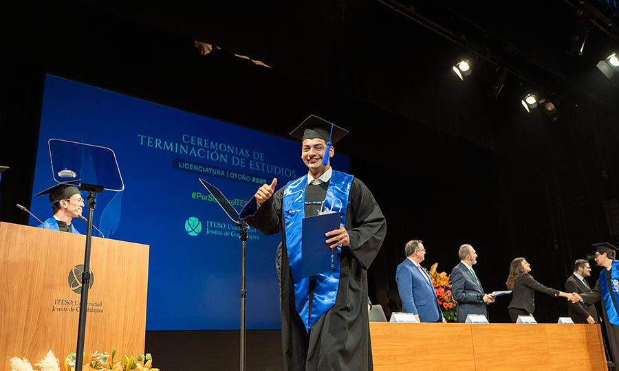 “El ITESO se ha convertido en un hogar […] donde encontramos una segunda familia, una familia llena de personas increíbles […] que llevaron nuestras ideas más lejos. Que nos retaron, nos apoyaron y nos inspiraron día a día”, expresó Juan Cutiño Chávez, egresado de Ingeniería en Nanotecnología, durante la primera de las seis ceremonias de terminación de estudios que se llevaron a cabo en el ciclo escolar Otoño 2025.