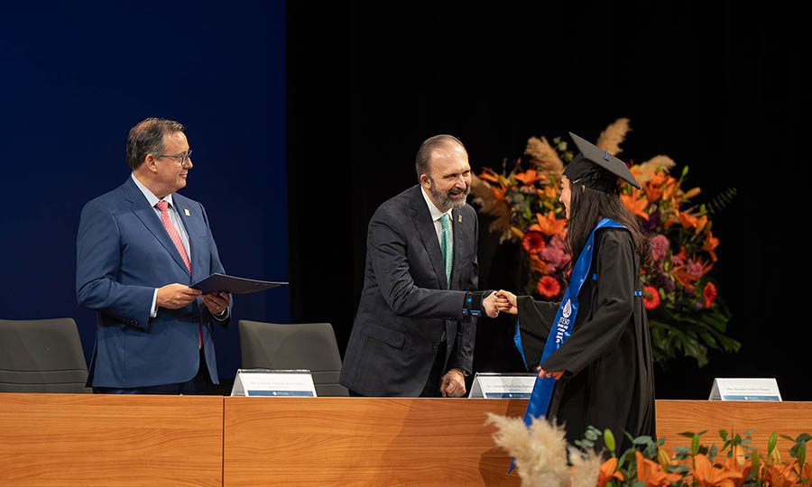 Destacó que en el ITESO se busca formar personas que no sean únicamente profesionales competentes, sino también seres humanos sensibles y comprometidos: “Un elemento clave en su formación fue el amor, ese amor que se percibe en este auditorio y que fue nutrido por sus madres, padres y seres queridos, quienes les ofrecieron su apoyo para que pudieran enfocarse en los estudios”.